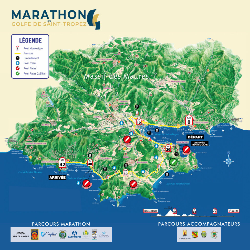 De Sainte-Maxime à Cavalaire-sur-Mer, le Marathon du Golfe de Saint-Tropez, organisé par les 12 communes, est bien plus qu’une course : c’est une aventure humaine et d’équipe, au cœur d’un territoire d’exception mêlant bord de mer, vignobles et collines.