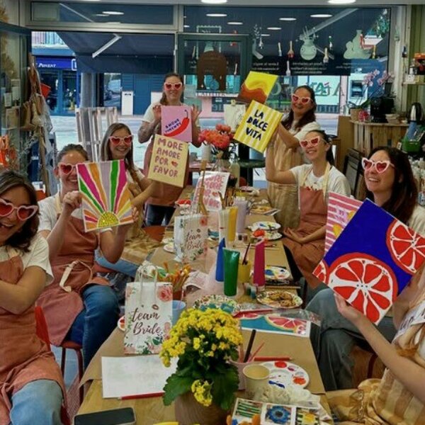 - Une activité parfaite pour marquer l’EVJF d’une touche d’originalité et repartir avec des souvenirs créés de vos propres mains ! Choisissez - Atelier peinture sur céramique : personnalisez chacune un mug, une assiette ou une tasse, que vous pourrez offrir à la mariée en souvenir. - Atelier tot bag personnalisé : créez des tot bags uniques, parfaits pour garder un souvenir commun de cette journée spéciale. - Atelier peinture sur tableau : créez ensemble plusieurs tableaux personnalisés selon les goûts de la mariée, pour un souvenir unique et mémorable de son EVJF. Accessible à toutes, quel que soit le niveau artistique, cet atelier combine rires, créativité et complicité. Infos pratiques : Groupe de 6 à 16 personnes Durée de l'activité (2h) Possibilité d’organiser l’atelier en extérieur (plage, jardin, lieu privatisé…) sur demande de devis.